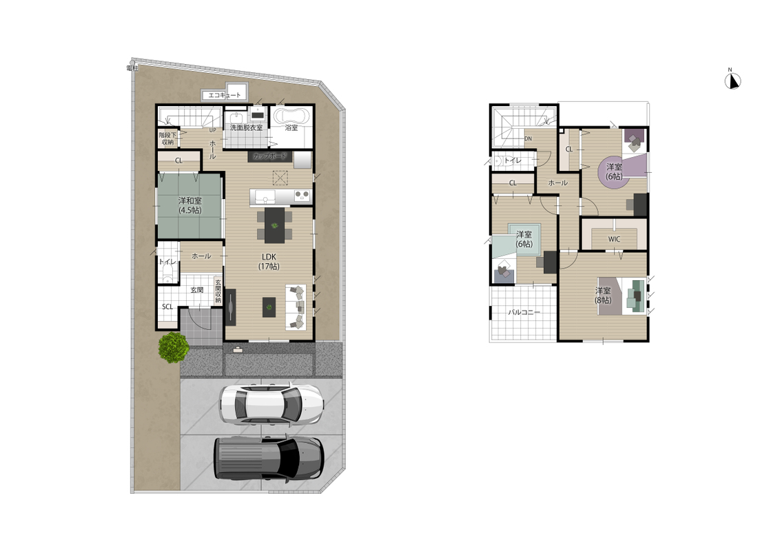 - ※完成予想図やCG合成画像は、門塀・植栽・庭・外観等、実際とは多少異なる場合があります。