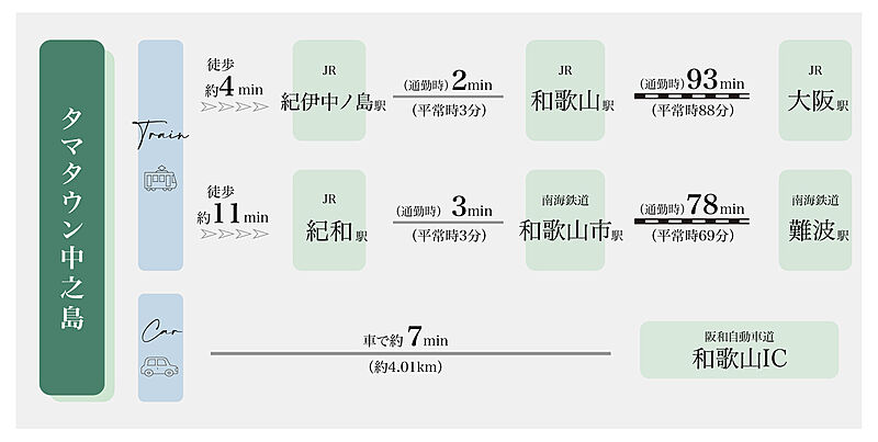 JR阪和線「紀伊中ノ島」駅 徒歩4分 JR紀勢本線「紀和」駅 徒歩11分 |