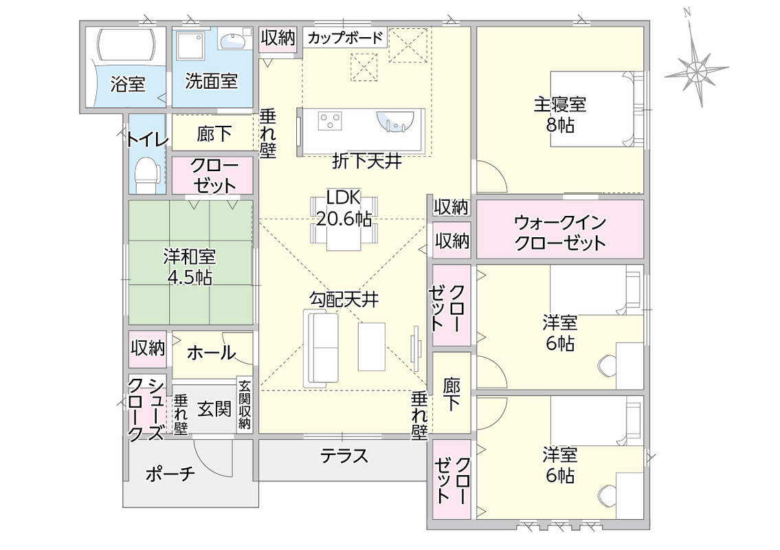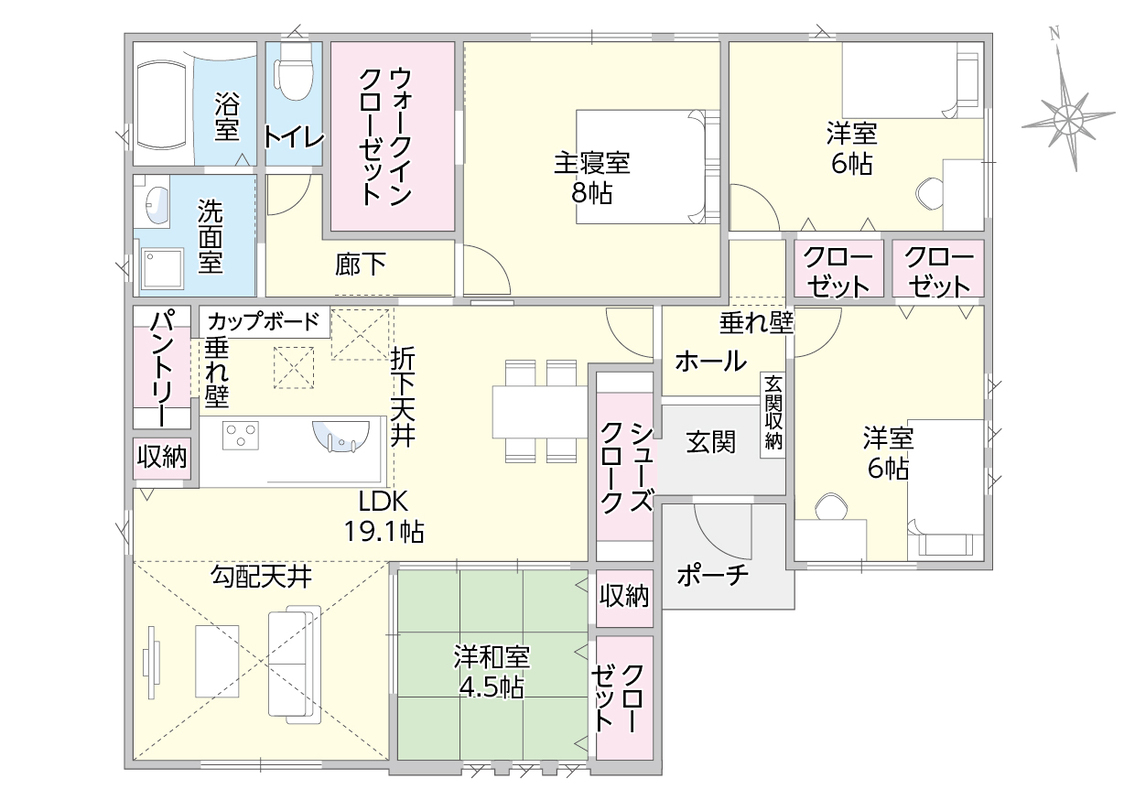 - ※完成予想図やCG合成画像は、門塀・植栽・庭・外観等、実際とは多少異なる場合があります。