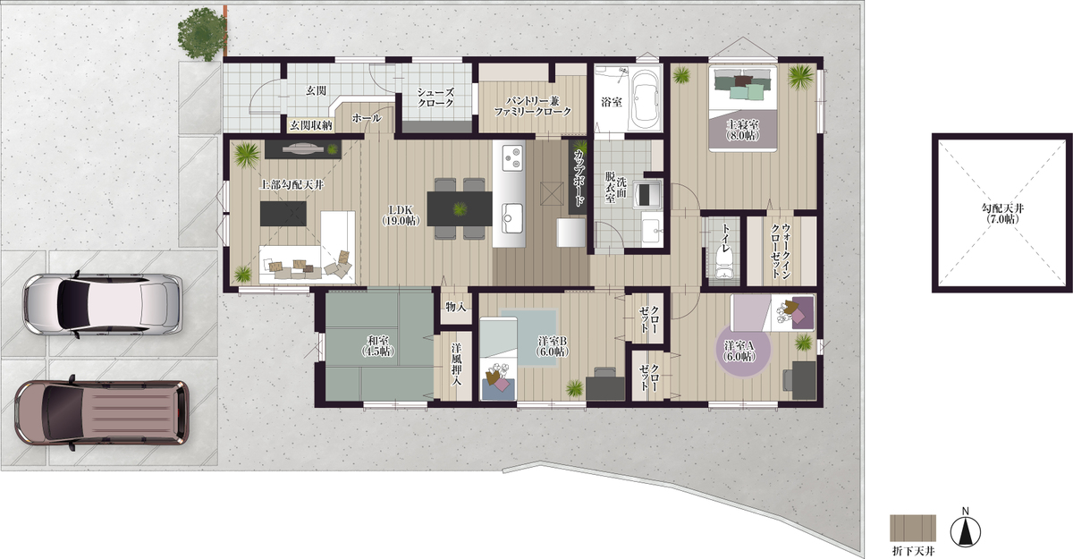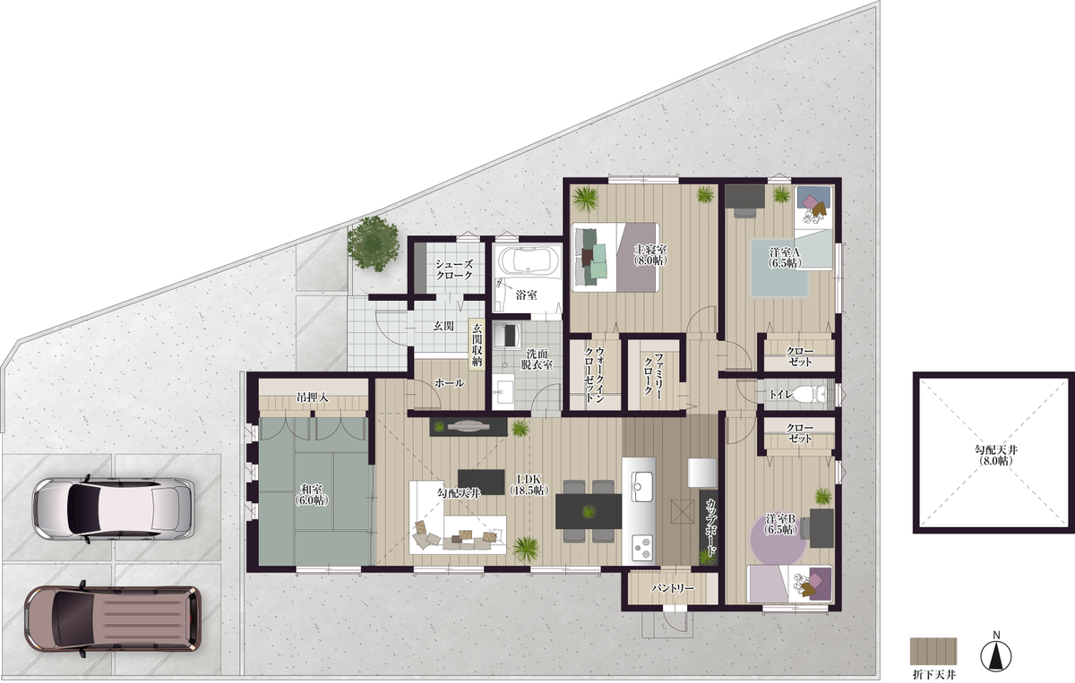 - ※完成予想図やCG合成画像は、門塀・植栽・庭・外観等、実際とは多少異なる場合があります。