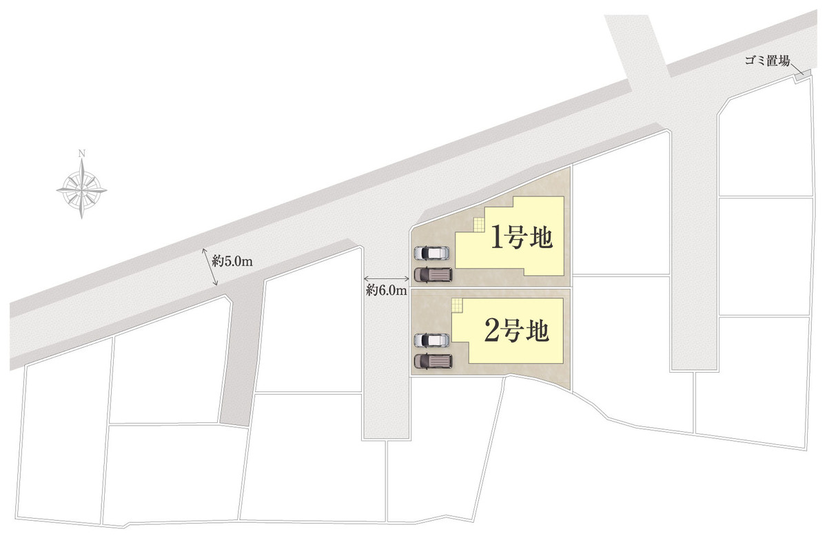 | 駐車場 | 2台 ~ 3台 | 道路の幅員 | 西側6m(私道負担あり) |