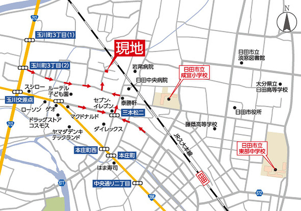 JR久大本線「日田」駅 徒歩13分~14分 |