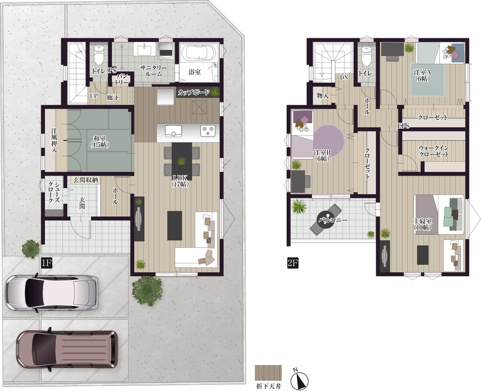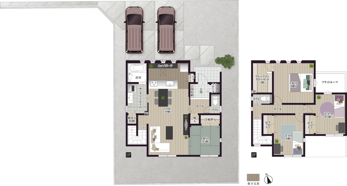 - ※完成予想図やCG合成画像は、門塀・植栽・庭・外観等、実際とは多少異なる場合があります。