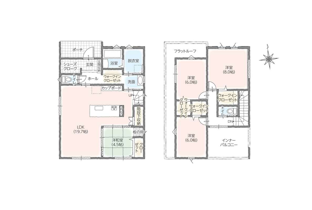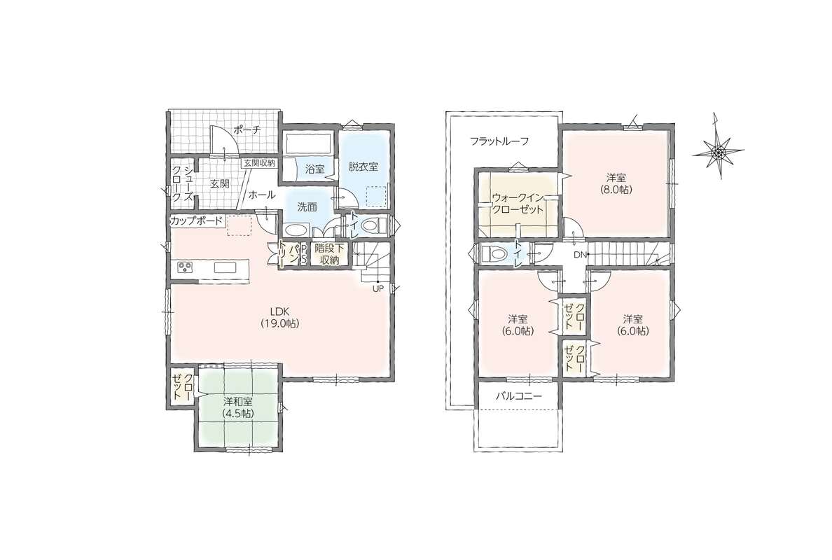 | 建物面積 | 111.78m2(2号棟)~115.88m2(1号棟) | 土地面積 | 181.90m2(1号棟)~182.07m2(2号棟) |