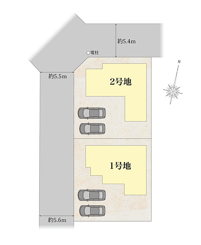 | 駐車場 | 2台 ~ 3台 | 道路の幅員 | 西側5.7メートル 北側5.5メートル |