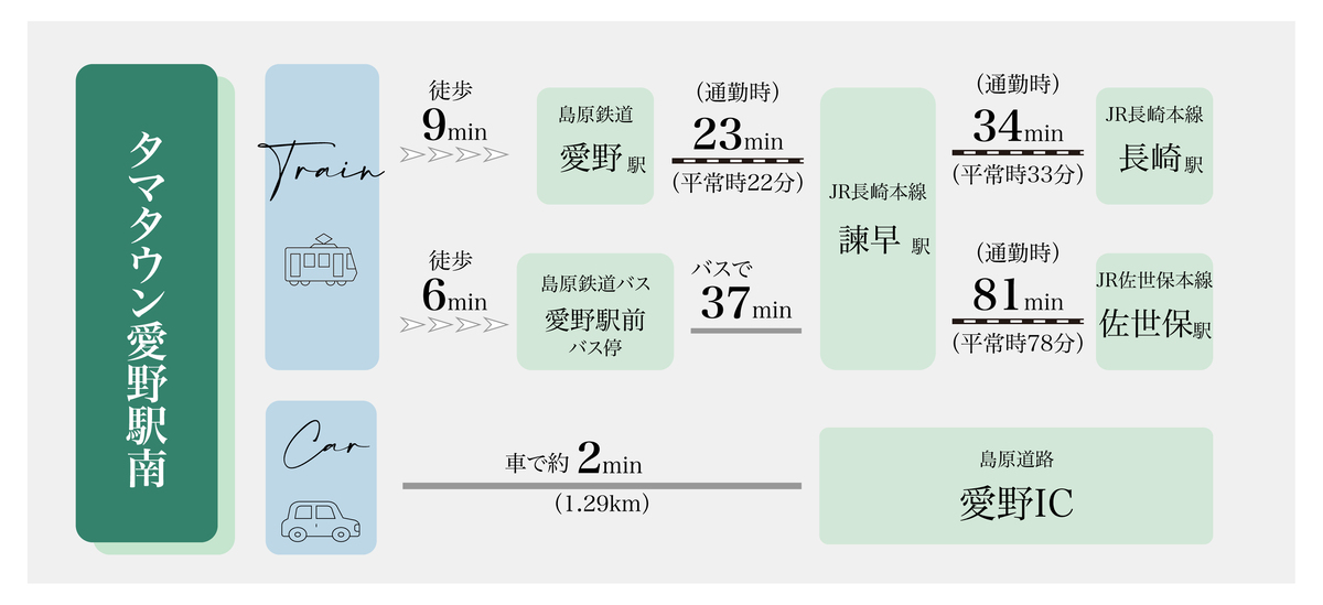 島原鉄道「愛野」駅 「愛野駅前」バス停/島原鉄道バス 徒歩6分~9分 |