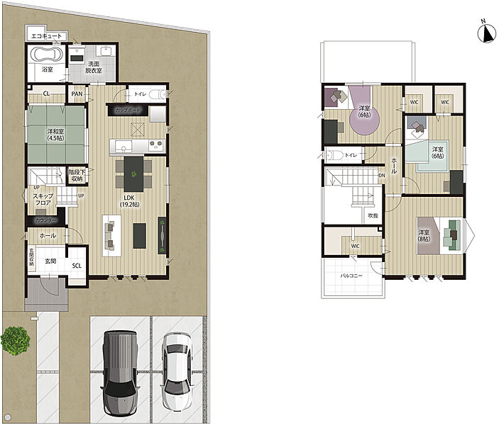 - ※完成予想図やCG合成画像は、門塀・植栽・庭・外観等、実際とは多少異なる場合があります。
