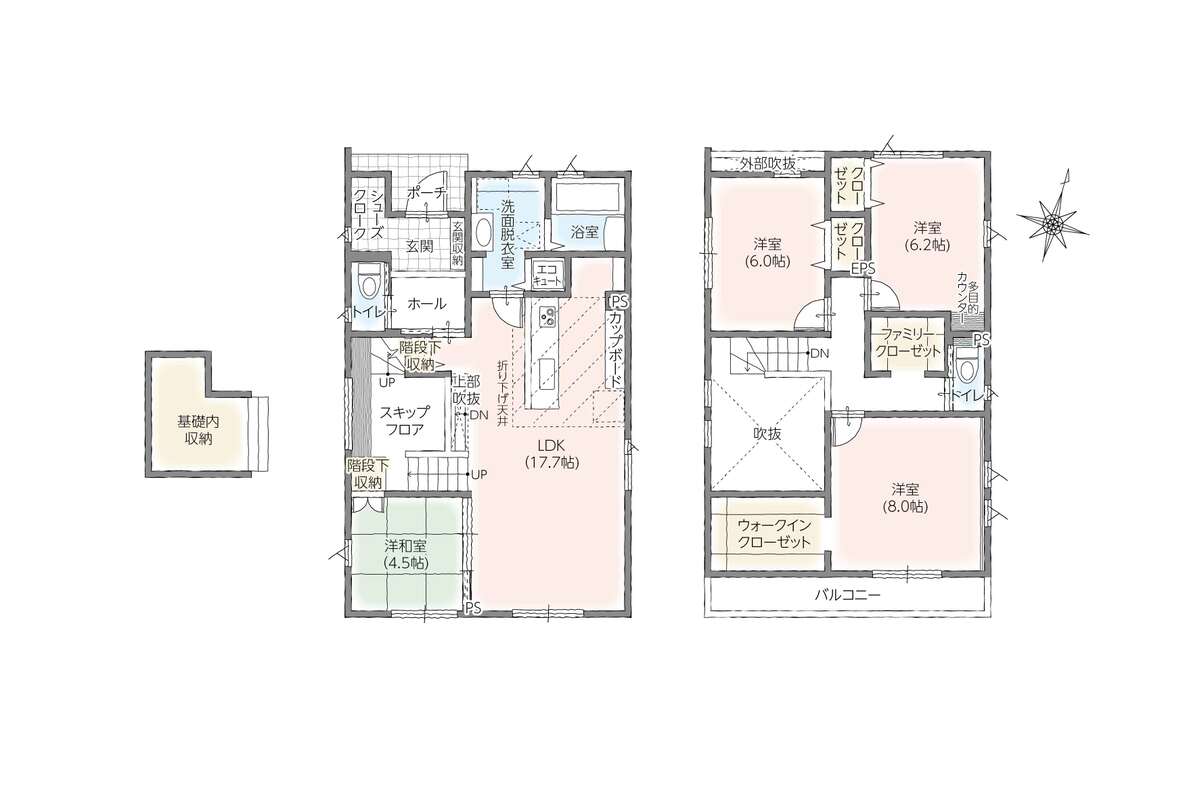 | 建物面積 | 110.96m2~120.89m2(実測) | 土地面積 | 169m2~173.8m2(実測) |