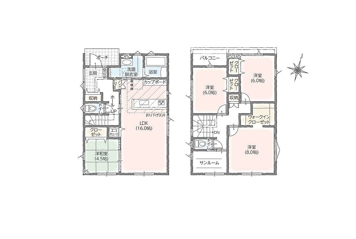 - ※完成予想図やCG合成画像は、門塀・植栽・庭・外観等、実際とは多少異なる場合があります。