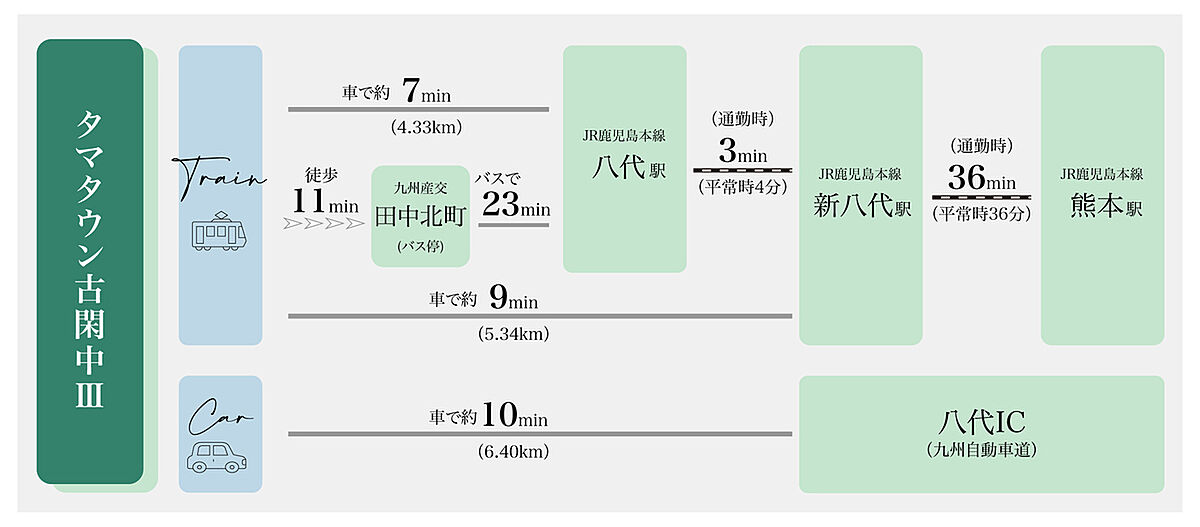 JR鹿児島本線「八代」駅 (3900m 車で約10分)