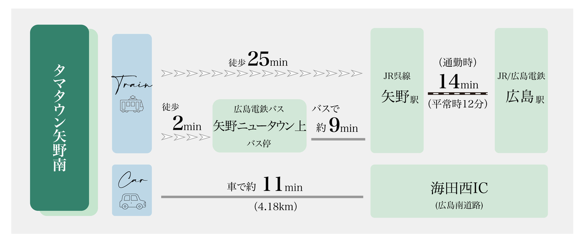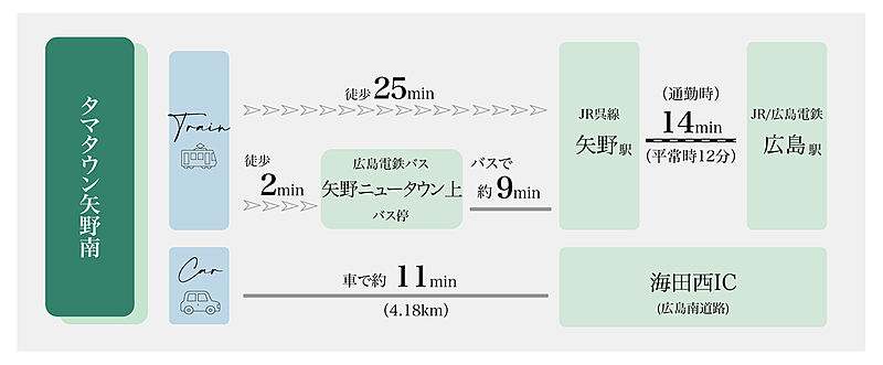 - JR呉線「矢野」駅 徒歩27分~30分 距離:約2,100m