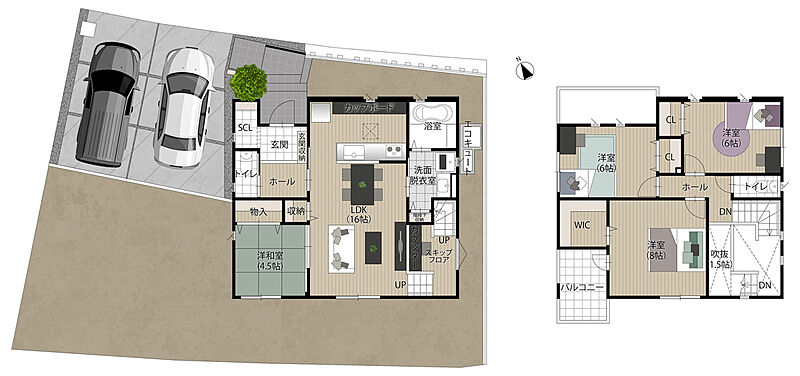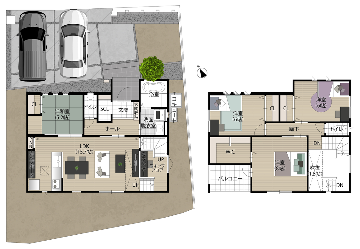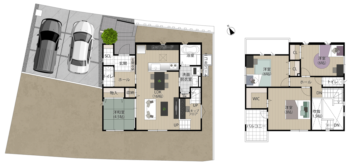 - ※完成予想図やCG合成画像は、門塀・植栽・庭・外観等、実際とは多少異なる場合があります。