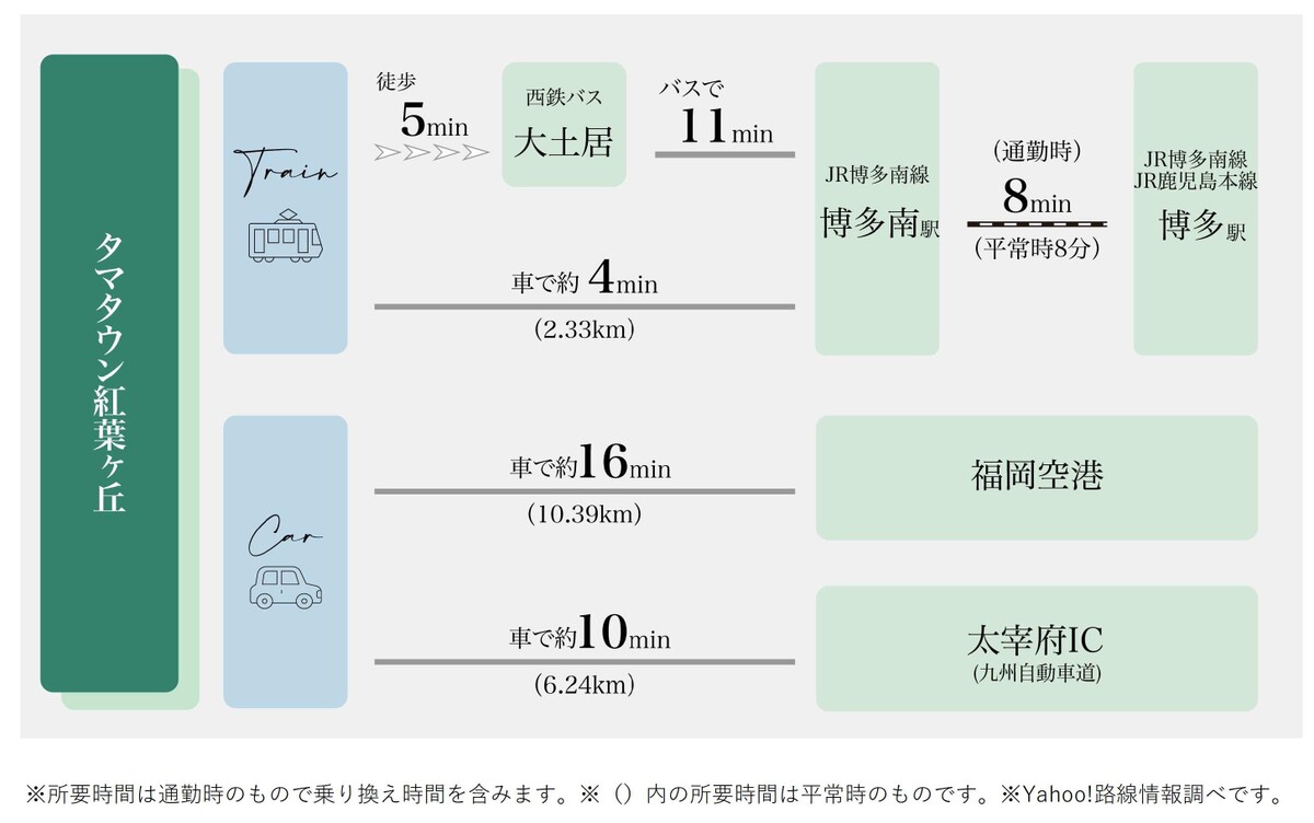 JR博多南線「博多南」駅 徒歩29分 西鉄バス大土居 徒歩5分 JR鹿児島本線「春日」駅 車2.5km |