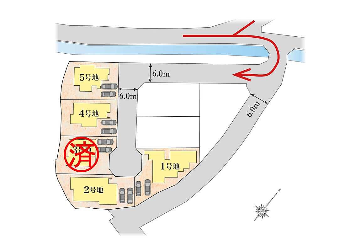 | 駐車場 | 2台 | 道路の幅員 | 道路幅:6m、アスファルト舗装、私道負担/無し |