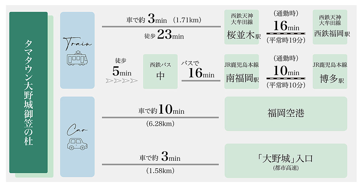 ●西鉄天神大牟田線「桜並木」駅、JR鹿児島本線「南福岡」駅の2路線2駅利用可!