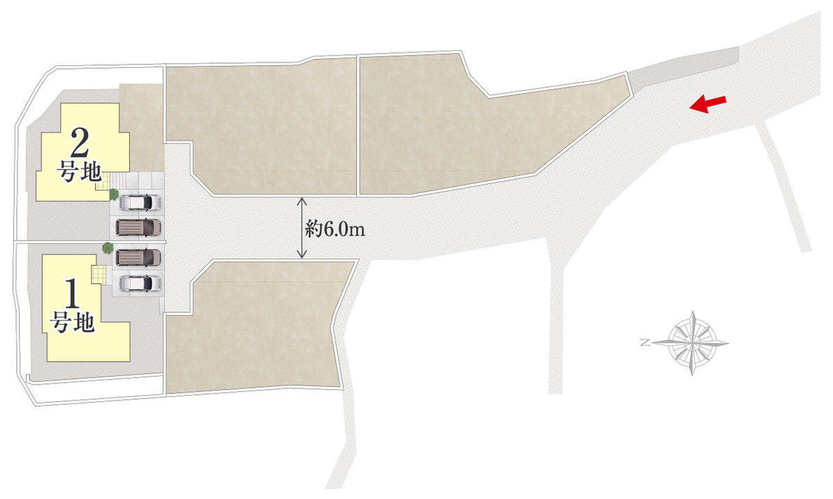 | 駐車場 | 2台(2戸) | 道路の幅員 | 南側6m |