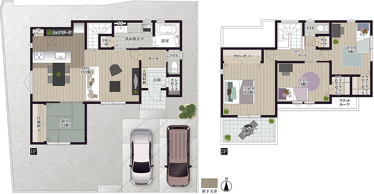 - ※完成予想図やCG合成画像は、門塀・植栽・庭・外観等、実際とは多少異なる場合があります。