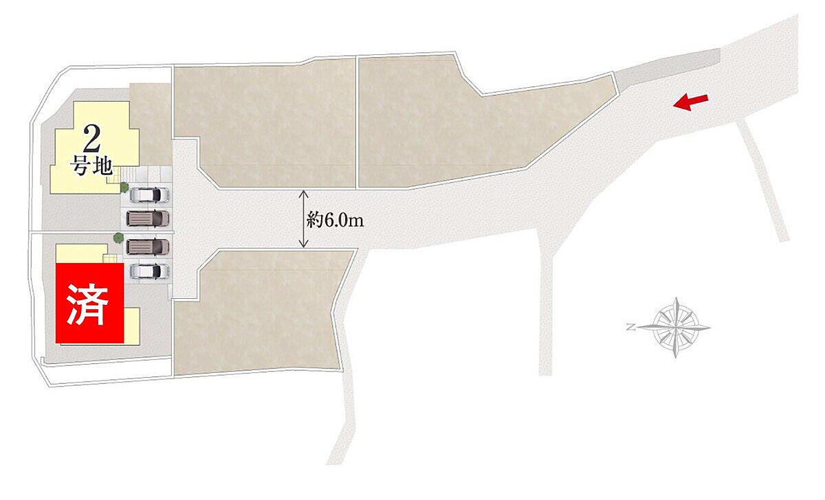 | 駐車場 | 2台 | 道路の幅員 | 南側6m |