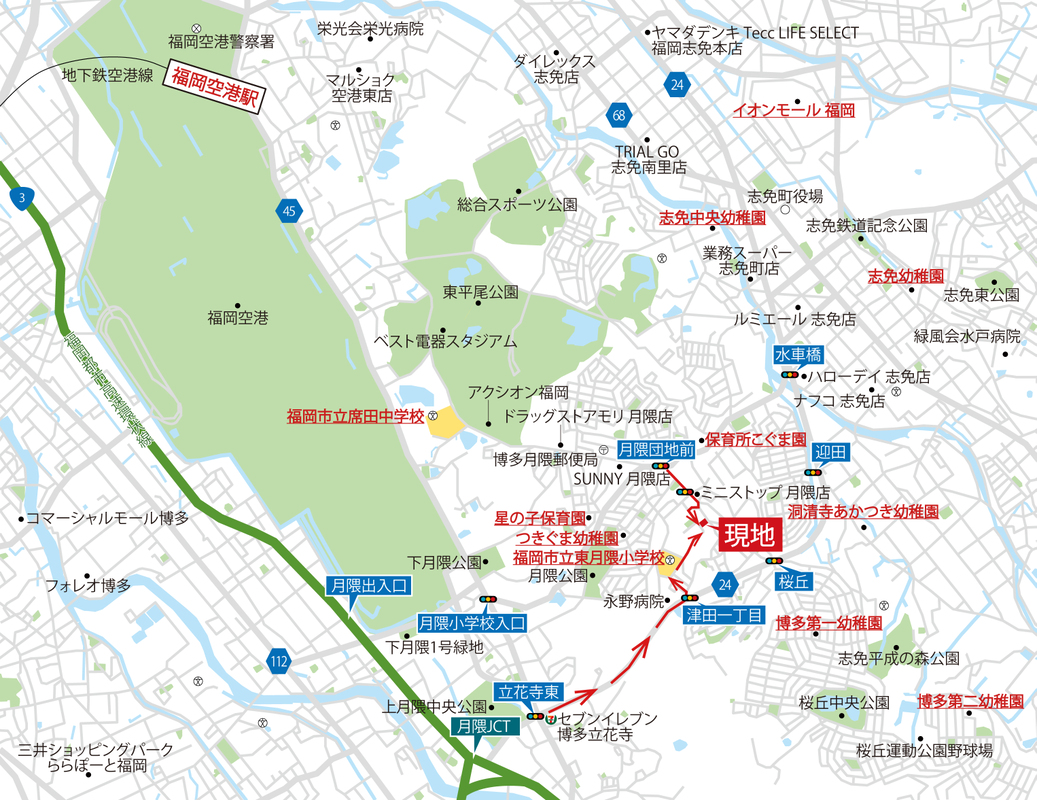 - 福岡市地下鉄空港線「福岡空港」駅 バス乗車10分西鉄バス「正手」停 徒歩12分