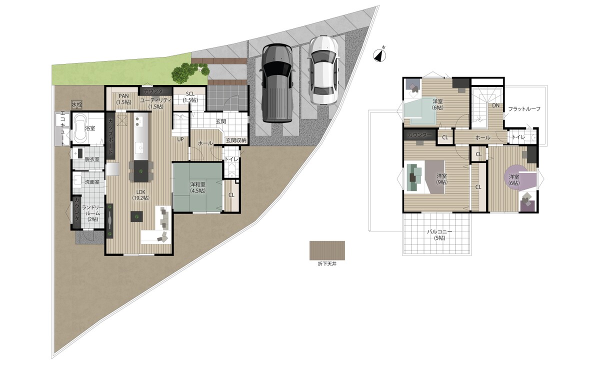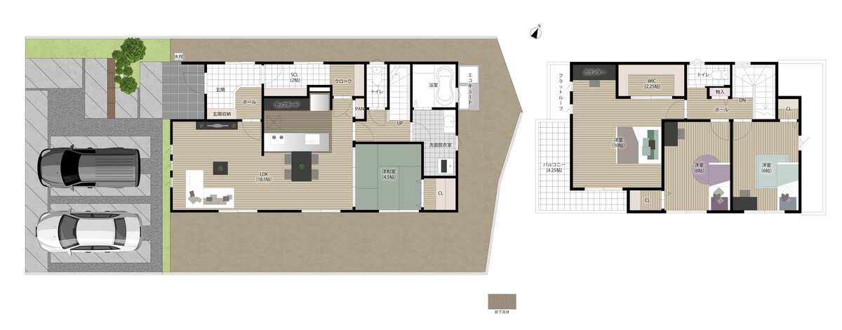 - ※完成予想図やCG合成画像は、門塀・植栽・庭・外観等、実際とは多少異なる場合があります。