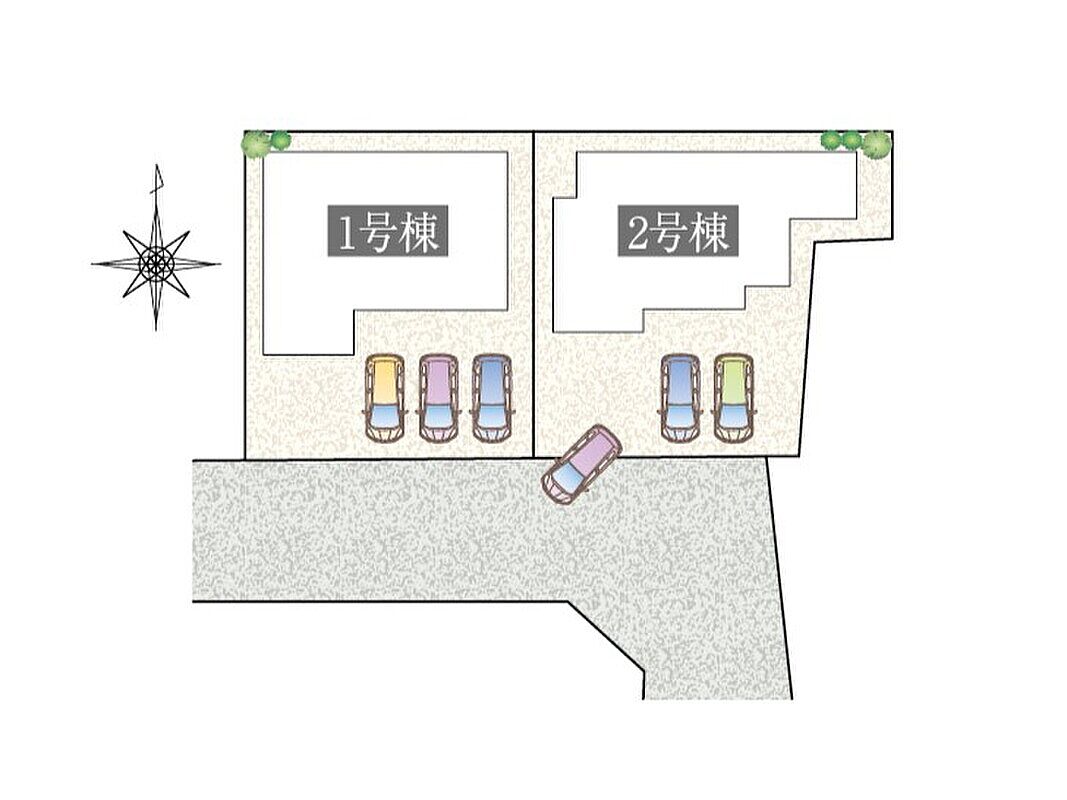 | 建物面積 | 119.24m2(36.06坪)・120.m2(36.32坪) | 土地面積 | ●155.57m2(47.05坪)・161.39m2(48.82坪) |
