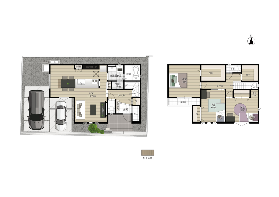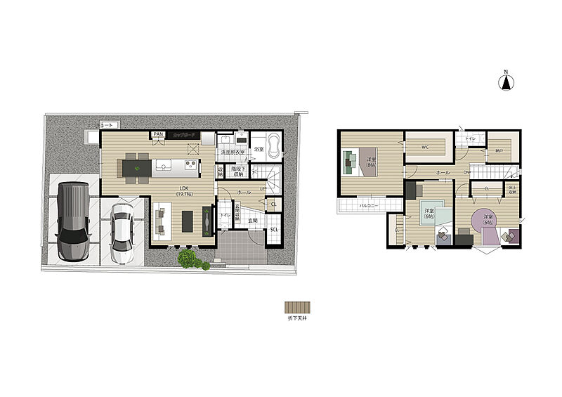 - ※完成予想図やCG合成画像は、門塀・植栽・庭・外観等、実際とは多少異なる場合があります。