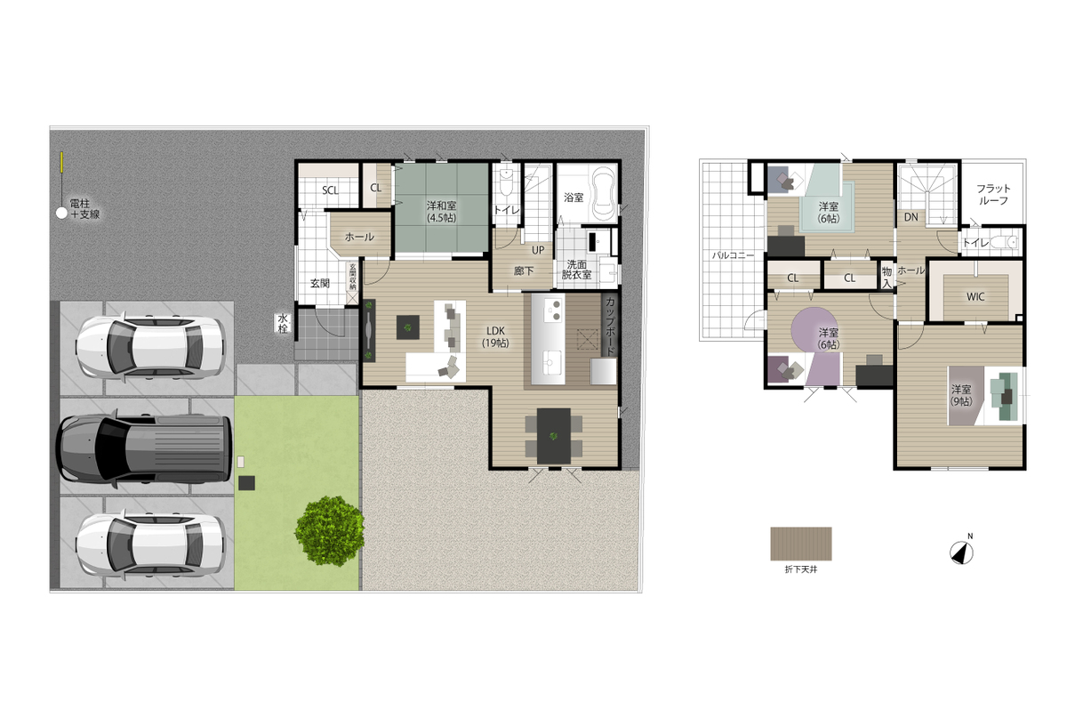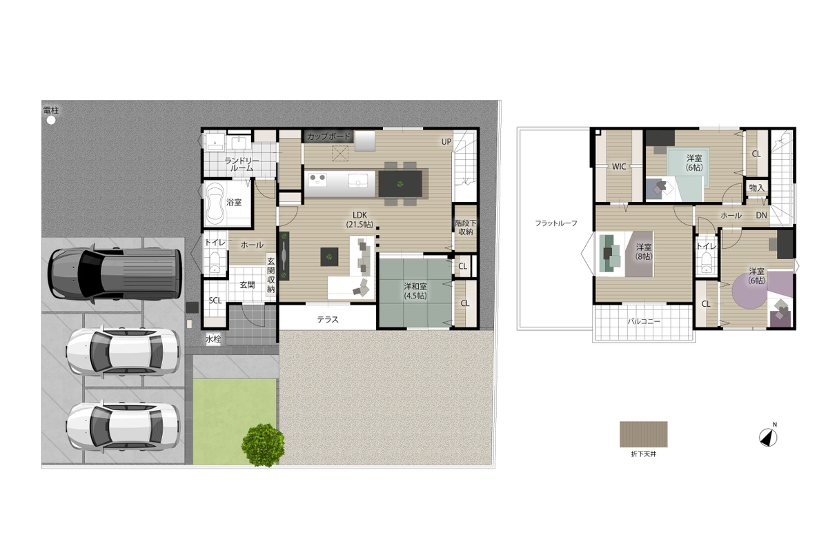 - ※完成予想図やCG合成画像は、門塀・植栽・庭・外観等、実際とは多少異なる場合があります。