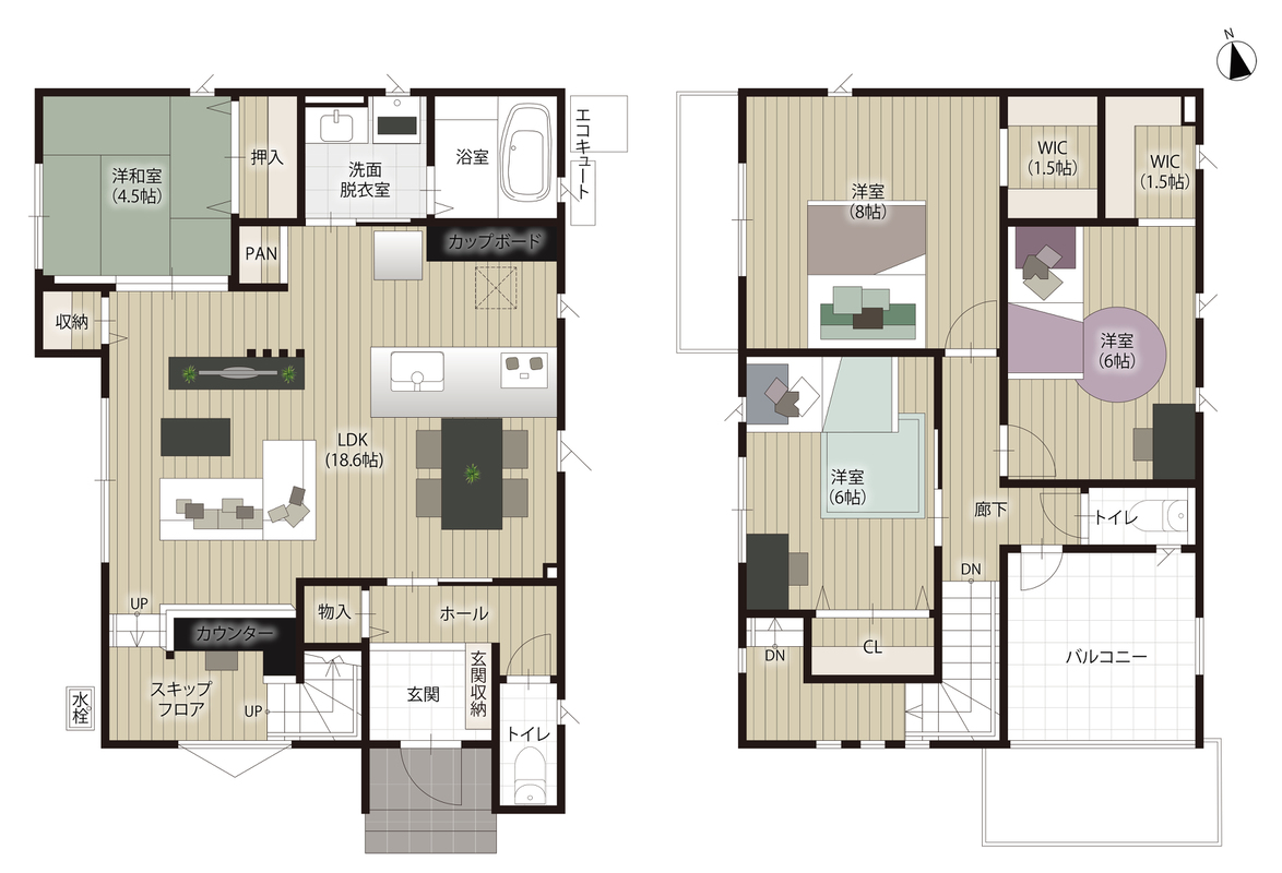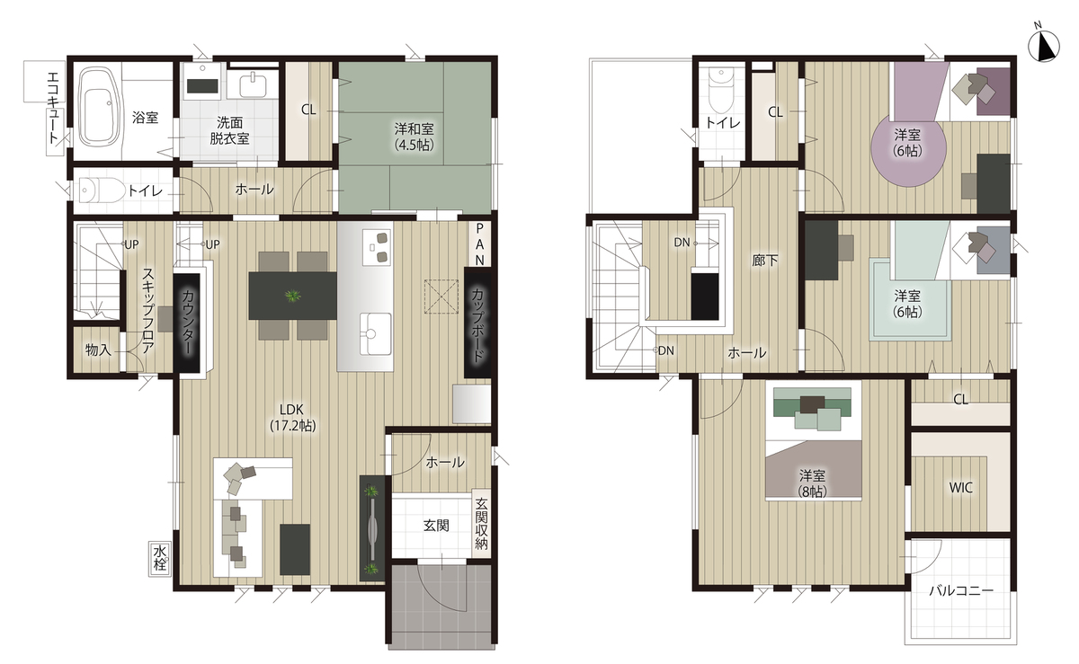 - ※完成予想図やCG合成画像は、門塀・植栽・庭・外観等、実際とは多少異なる場合があります。
