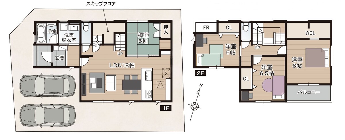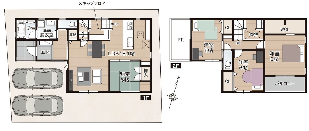 | 建物面積 | 1号地:110.12m2(33.31坪)・2号地:109.30m2(33.07坪) | 土地面積 | 134.86m2 |