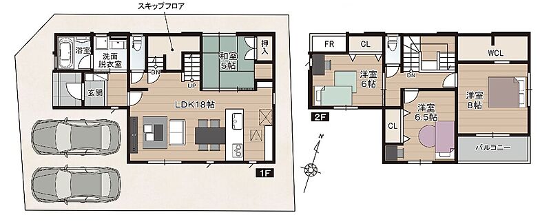 | 建物面積 | 1号地:110.12m2(33.31坪)・2号地:109.30m2(33.07坪) | 土地面積 | 134.86m2 |