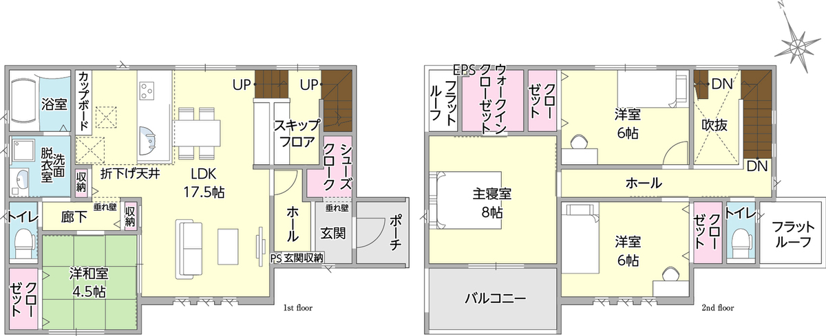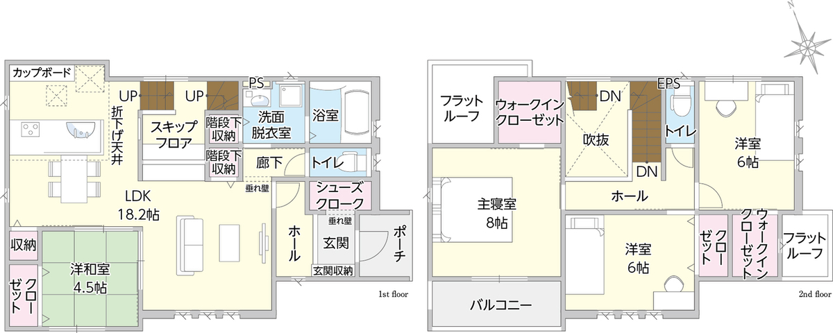 | 建物面積 | 112.60m2(34.06坪)・113.84m2(34.43坪) | 土地面積 | 183.42m2(55.48坪)・185.66m2(56.16坪) |