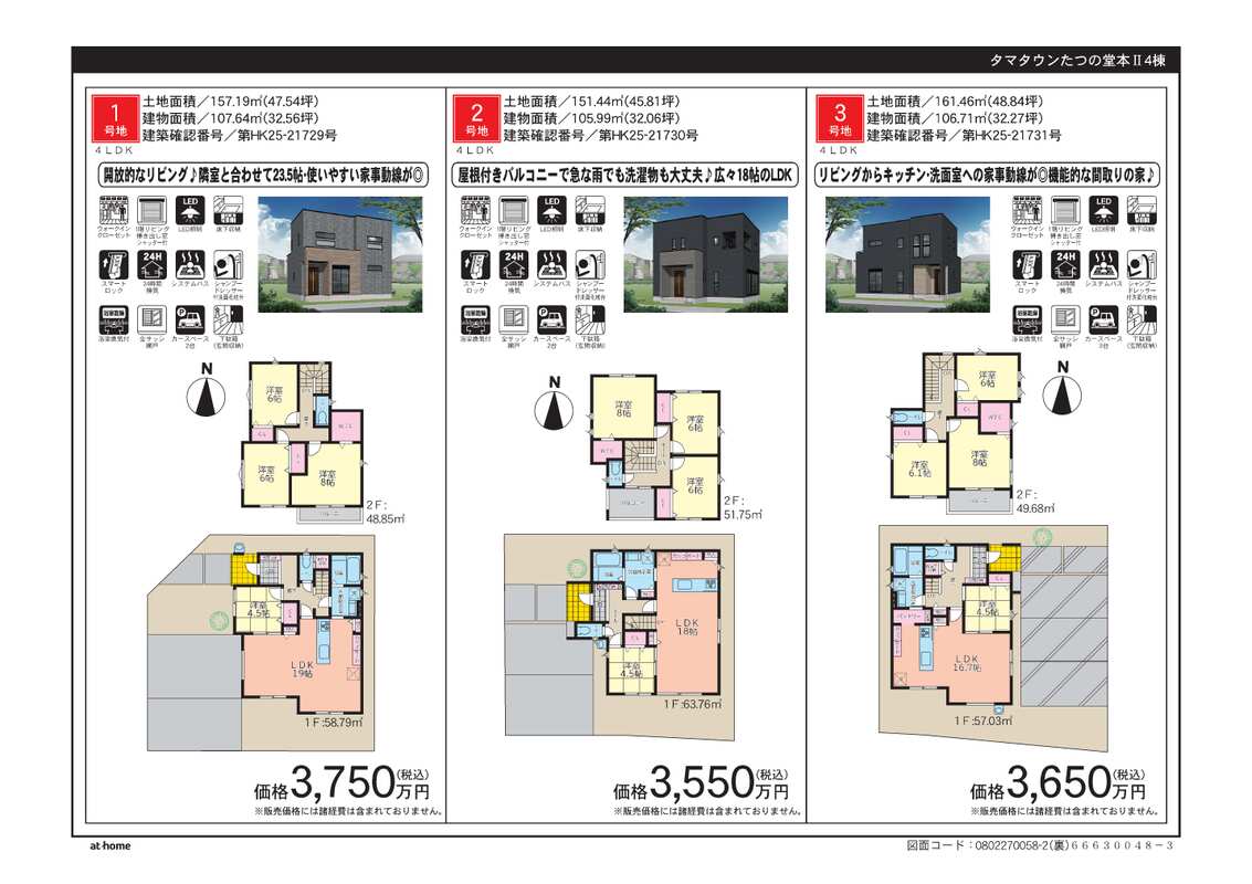 | 建物面積 | 105.99m2~106.71m2 | 土地面積 | 151.44m2~161.46m2 3区画 |