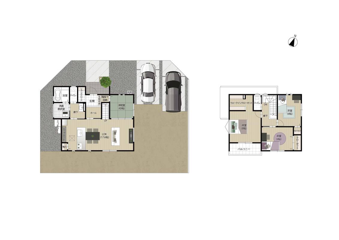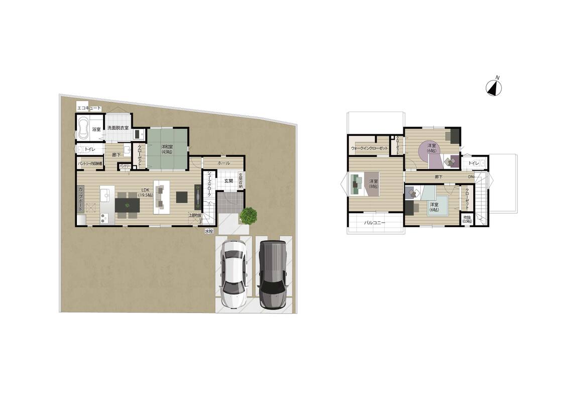 - ※完成予想図やCG合成画像は、門塀・植栽・庭・外観等、実際とは多少異なる場合があります。