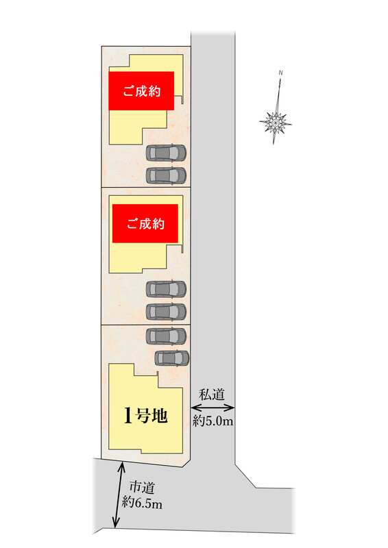 | 駐車場 | 2台 | 道路の幅員 | 幅員5.0m・私道負担:あり(面積:35.00m2、持分:1/8) |