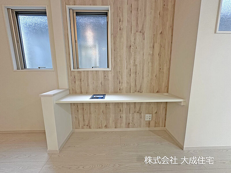 リビングにスタディーカウンター付きでお子さまの学習のサポートもできます♪