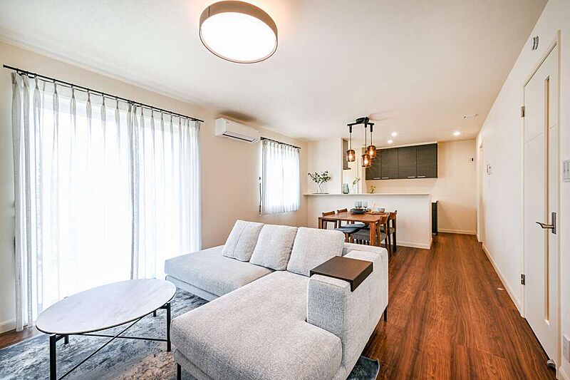 ゆったりとした土地に、4LDKの機能的な間取りでとても使いやすいお住まいです。モダンな外観デザインと明るく開放的な雰囲気のお住まいです。是非ご見学ください。