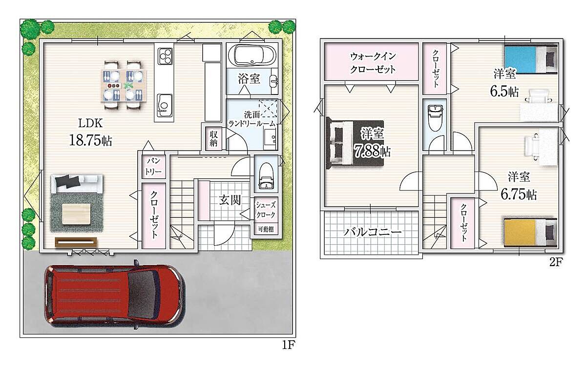 - ※完成予想図やCG合成画像は、門塀・植栽・庭・外観等、実際とは多少異なる場合があります。