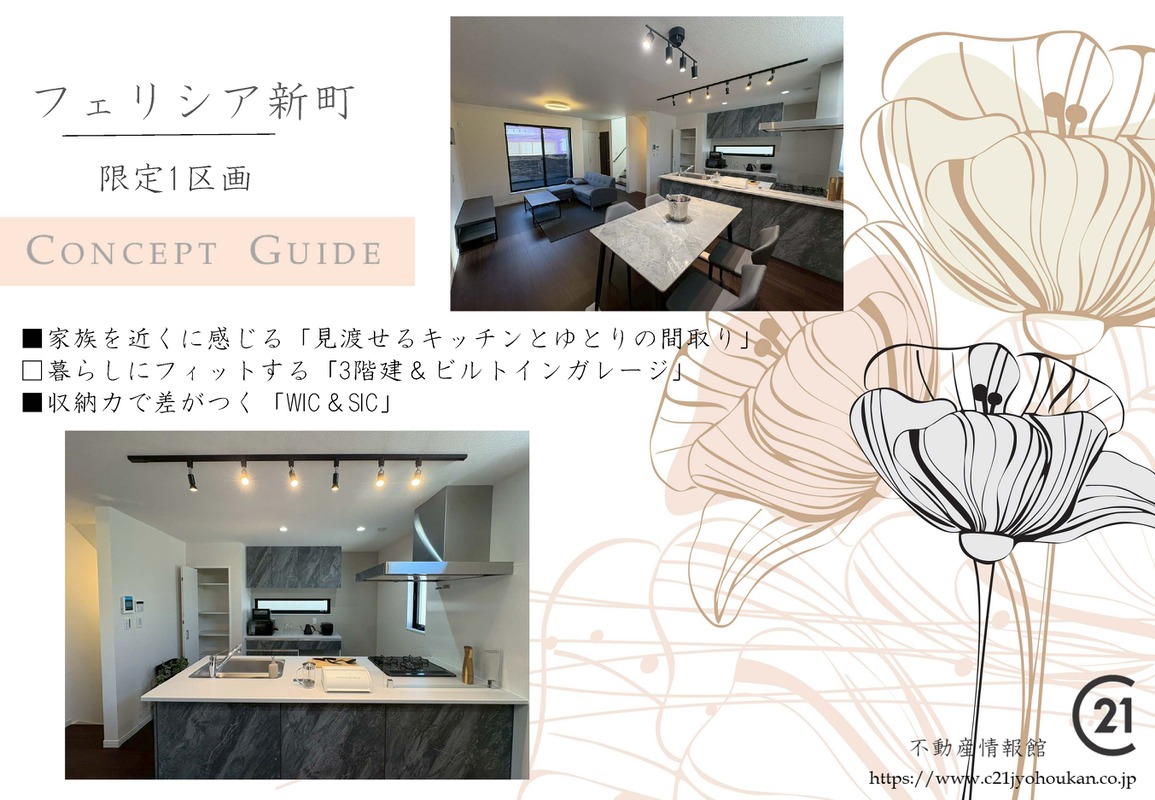 3階建てならではの豊富な部屋数で、成長に合わせて個室を確保可能。家族構成の変化にも柔軟に対応できる住まいです。子育てしやすい新町エリアで、急な来客も安心の1階トイレ完備。快適な新築戸建