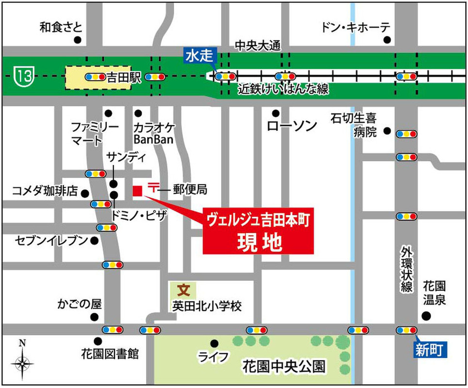 近鉄けいはんな線「吉田」駅 徒歩7分 近鉄奈良線「東花園」駅 徒歩21分 近鉄けいはんな線「新石切」駅 徒歩25分 |