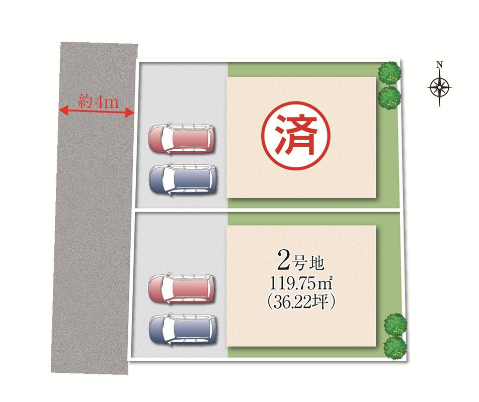 | 駐車場 | 1台 ~ 2台 | 道路の幅員 | 一方 西側4m |