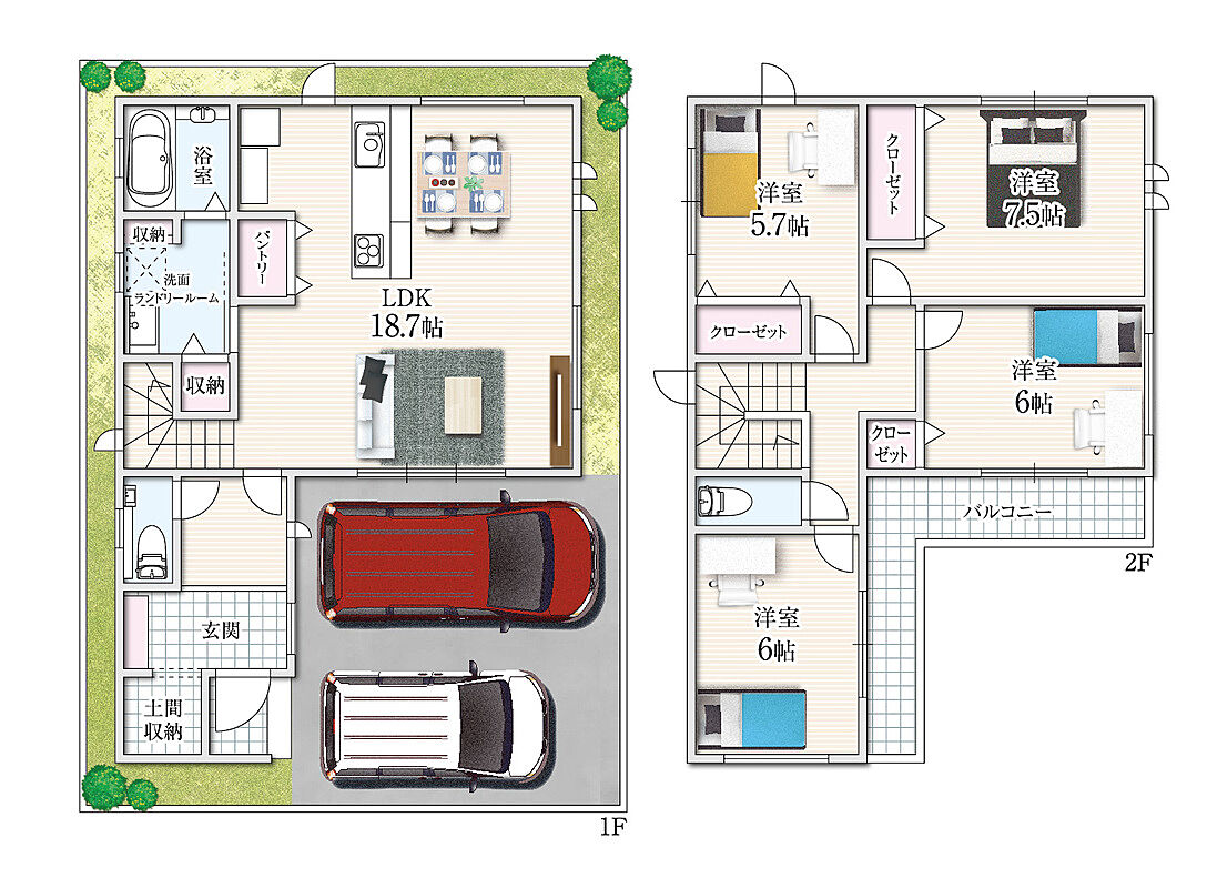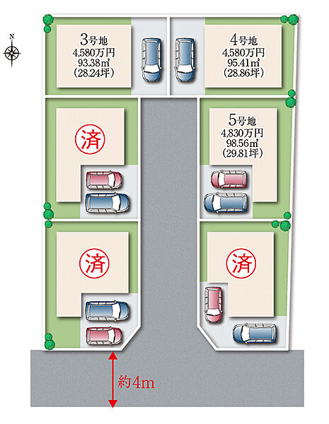 ■閑静な住宅街に誕生した全6区画の新築分譲地。駐車スペースは1~2台を確保し、ゆとりある敷地で理想の住まいを実現可能です。