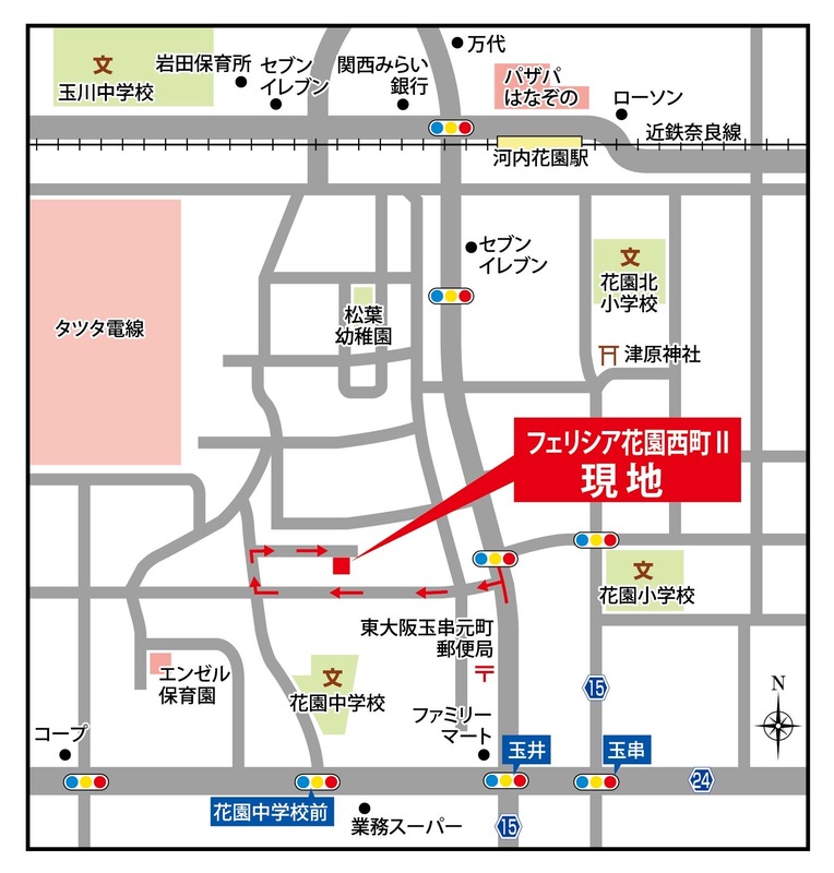 近鉄奈良線「河内花園」駅 徒歩14分 近鉄奈良線「若江岩田」駅 徒歩18分 近鉄奈良線「東花園」駅 徒歩20分 |