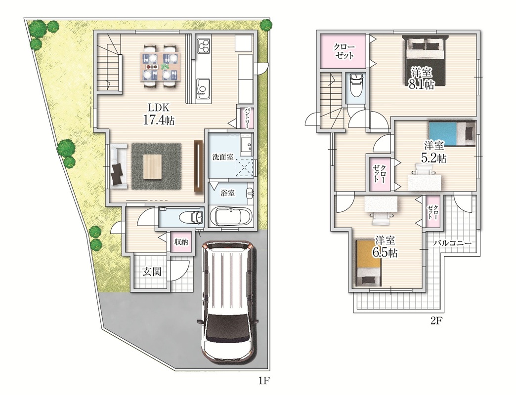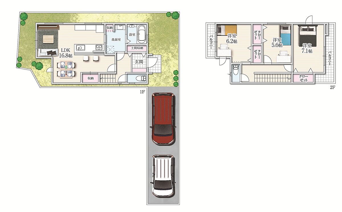 - ※完成予想図やCG合成画像は、門塀・植栽・庭・外観等、実際とは多少異なる場合があります。