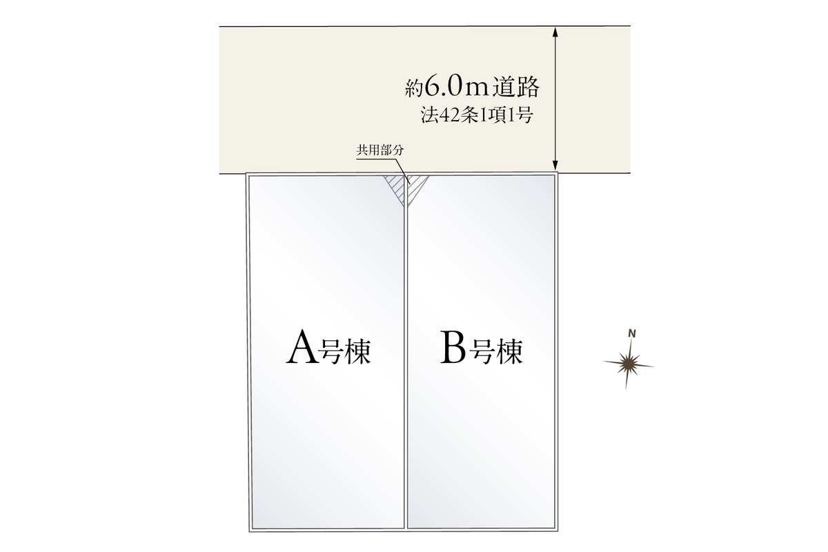 | 駐車場 | 1台(車種による) | 道路の幅員 | 北側 約6.0m公道 |