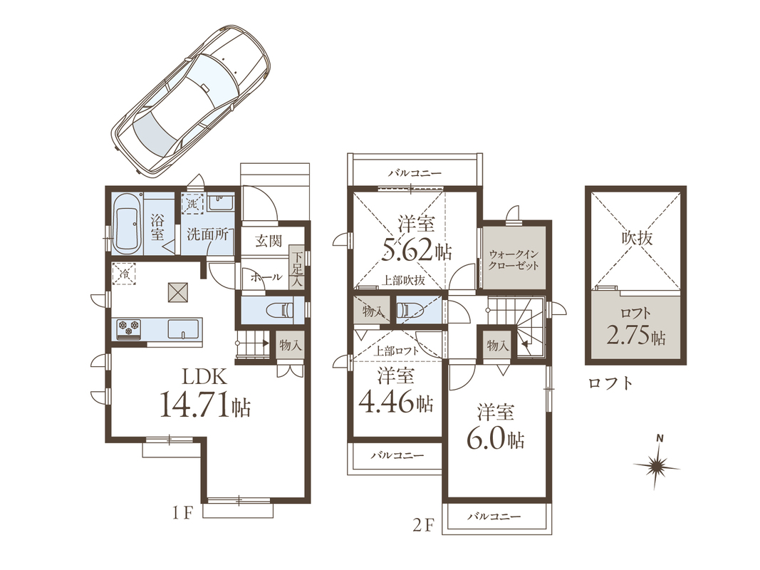 - 72.04m2・74.42m2(21.79坪・22.51坪)