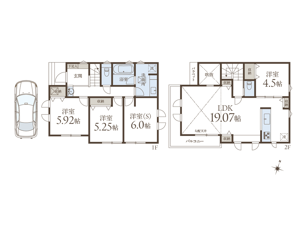 ・全居室洋室タイプ。プライバシー性の高い2階LDKの間取り。