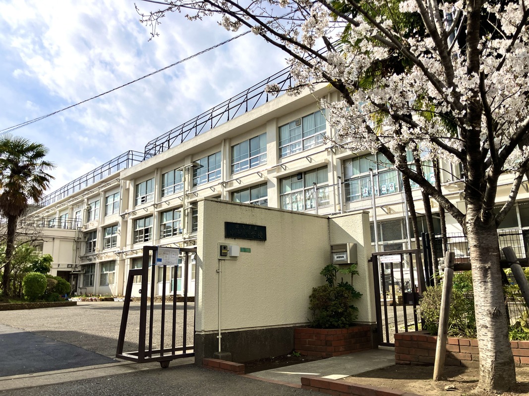 芝生の校庭や木々に囲まれた緑豊かな小学校。教育目標は「よく考え...