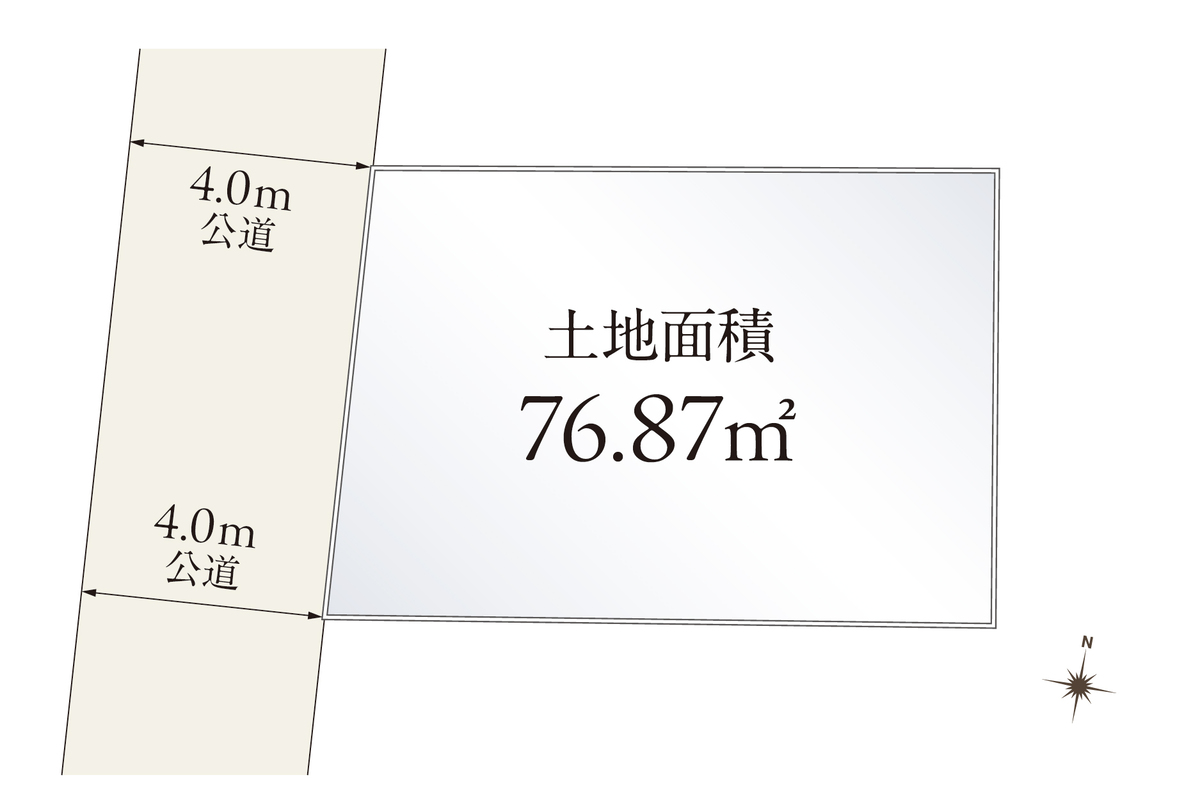 デッドスペースが生じにくい整形地です。前面道路は幅員約4.0m...