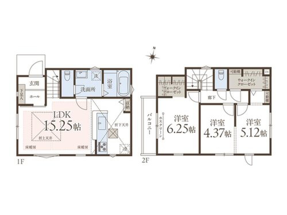 収納豊富な2階建3LDK。2階東側洋室2室は、約9.49帖の広...