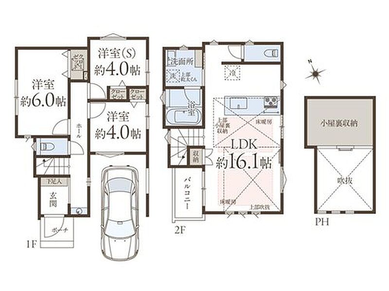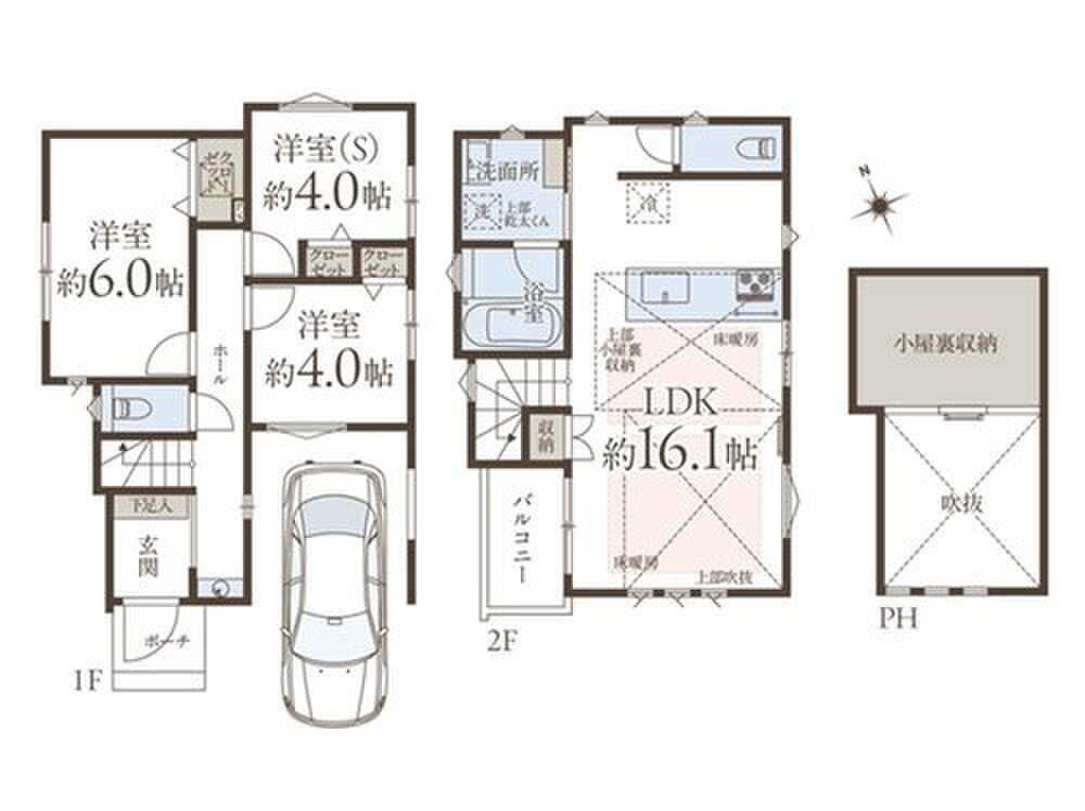 | 建物面積 | 81.67m2(24.70坪)(※1階車庫8.5m2含む) | 土地面積 | 74.85m2(22.64坪) |